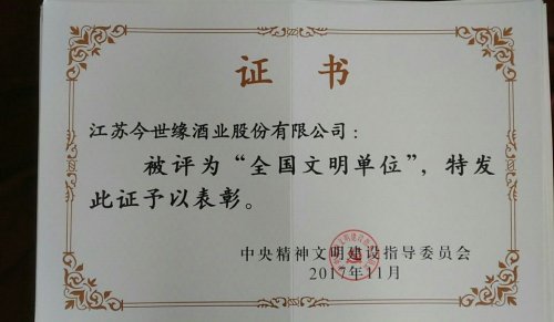 11月17日,在全國精神文明建設(shè)表彰大會上,今世緣酒業(yè)被中央文明委授予“全國文明單位”稱號。這是幸福今世緣建設(shè)取得的重大標志性成果。近年來,特別是黨的十八大以來,今世緣酒業(yè)堅持將社會主義核心價值體系融入企業(yè)生產(chǎn)經(jīng)營,大力弘揚企業(yè)精神,全力實施“打造品牌、以質(zhì)取勝、文化營銷、人才強企”四大基礎(chǔ)戰(zhàn)略,持之以恒并創(chuàng)造性地開展具有時代特色的文明創(chuàng)建工作,促進了企業(yè)更好更快發(fā)展,各項工作邁上新臺階,主要經(jīng)濟指標攀上新高度。黨的十九大勝利召開后,公司黨委在切實學(xué)懂弄通做實黨的十九大精神上下功夫,深刻學(xué)習(xí)領(lǐng)會我國社會主要矛盾發(fā)生的歷史性變化,緊密結(jié)合今世緣生產(chǎn)經(jīng)營實際,緊扣主要矛盾,謀劃酒緣大業(yè),在滿足人民日益增長美好生活需要中搶抓新機遇、建好新模式、培育新動能,在深化“品牌+渠道”雙驅(qū)動中追求卓越今世緣。