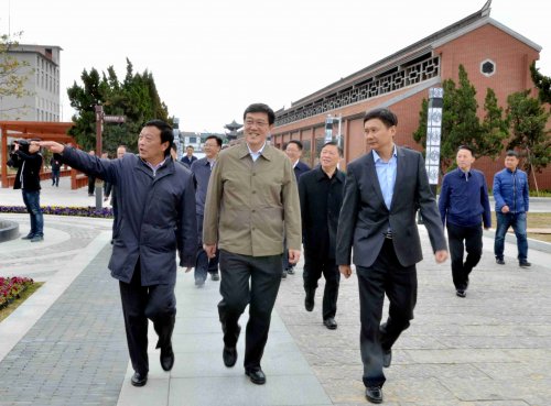 圖為3月23日上午,市委書記、市人大常委會主任姚曉東(前排中)視察今世緣景區(qū)。
