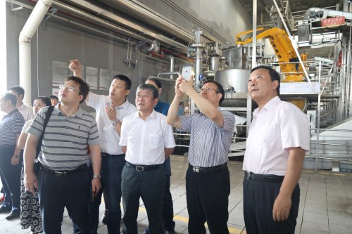 圖為今世緣酒業(yè)董事長、黨委書記、總經(jīng)理周素明(右一)陪同項目鑒定委員會專家考察白酒智能化生產(chǎn)現(xiàn)場。