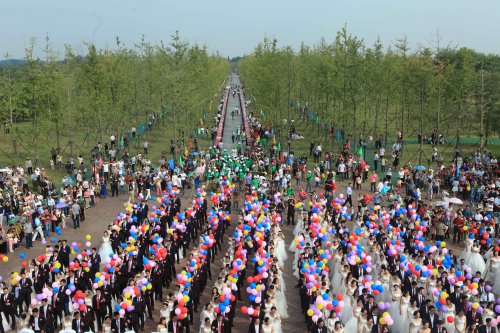 9月19日,以“緣系千秋·情定揚州”為主題的“揚州2500周年城慶今世緣集體婚禮”,在揚州瘦西湖畔的宋夾城體育休閑公園盛大舉行。中外258對新人身著西式婚紗禮服,在2500歲古城的見證下喜結連理。