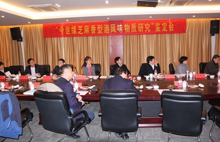 2012年12月4日,“中國(guó)白酒169計(jì)劃”項(xiàng)目之一的“今世緣芝麻香型酒風(fēng)味物質(zhì)剖析技術(shù)體系及其關(guān)鍵風(fēng)味物質(zhì)研究”項(xiàng)目科研成果鑒定會(huì)在江蘇今世緣酒業(yè)召開(kāi)。此次會(huì)議由中國(guó)輕工業(yè)聯(lián)合會(huì)組織和主持。參加此次鑒定會(huì)的領(lǐng)導(dǎo)有:中國(guó)輕工業(yè)聯(lián)合會(huì)科技辦處長(zhǎng)朱業(yè)耘,江蘇省酒類行業(yè)協(xié)會(huì)會(huì)長(zhǎng)陳國(guó)鎖、副會(huì)長(zhǎng)兼秘書(shū)長(zhǎng)王建英;鑒定委員會(huì)專家有:中國(guó)酒業(yè)協(xié)會(huì)白酒分會(huì)秘書(shū)長(zhǎng)趙建華、副秘書(shū)長(zhǎng)宋書(shū)玉,中國(guó)食品科學(xué)技術(shù)學(xué)會(huì)教授孫熲,中國(guó)食品發(fā)酵工業(yè)研究院的教授熊正河,山東扳倒井副總張鋒國(guó),安徽口子酒業(yè)副總張國(guó)強(qiáng),淮陰工學(xué)院教授陳曉明;項(xiàng)目完成單位領(lǐng)導(dǎo)有:江南大學(xué)副校長(zhǎng)、教授徐巖,研究員范文來(lái),今世緣酒業(yè)副總經(jīng)理吳建峰以及研究院相關(guān)科研人員。會(huì)議由朱業(yè)耘處長(zhǎng)主持,趙建華秘書(shū)長(zhǎng)任鑒定委員會(huì)主任。