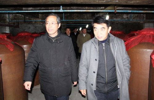 2012年12月27日,省國土資源廳廳長夏鳴視察今世緣。圖為今世緣公司黨委副書記、工會主席劉可康陪同夏鳴視察地下酒庫。 佳成 攝