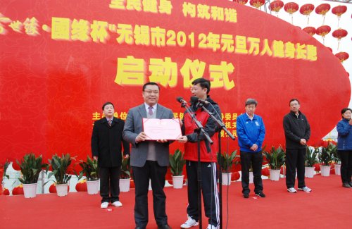 1月1日,當(dāng)2012年第一縷陽(yáng)光普照大地,無(wú)錫、揚(yáng)州、南京三地同時(shí)迎來(lái)了“今世緣·國(guó)緣杯”元旦健身長(zhǎng)跑活動(dòng)。在無(wú)錫,來(lái)自無(wú)錫市委、市人大、市政府、市政協(xié)四套班子領(lǐng)導(dǎo)和上萬(wàn)名群眾,在美麗的蠡湖之光廣場(chǎng),隆重舉行“今世緣·國(guó)緣杯”無(wú)錫市2012年元旦健身長(zhǎng)跑活動(dòng)。無(wú)錫市委常委、宣傳部長(zhǎng)王國(guó)中,市人大常委會(huì)副主任曹錫榮,副市長(zhǎng)曹佳中,市政協(xié)副主席蔡捷敏,今世緣酒業(yè)黨委副書(shū)記、副總經(jīng)理倪從春出席活動(dòng)。曹佳中對(duì)多年以來(lái)一直支持無(wú)錫體育事業(yè)發(fā)展的今世緣酒業(yè)表示感謝。在揚(yáng)州,揚(yáng)州市市長(zhǎng)謝正義等市四套班子領(lǐng)導(dǎo)以及揚(yáng)州市其他部門(mén)負(fù)責(zé)人以及近千個(gè)方陣、十萬(wàn)群眾,開(kāi)始了2012年揚(yáng)州市“國(guó)緣杯”元旦萬(wàn)人健身長(zhǎng)跑活動(dòng)。今世緣酒業(yè)揚(yáng)州分公司經(jīng)理李彬彬說(shuō),與體育結(jié)緣是今世緣人的不解情結(jié)。今世緣自從與揚(yáng)州人民結(jié)緣以來(lái),一直受到揚(yáng)州各界的關(guān)心與厚愛(ài),作為在揚(yáng)州受益的企業(yè),今世緣有責(zé)任為推廣這樣的活動(dòng)貢獻(xiàn)綿薄之力。在南京,南京市委書(shū)記楊衛(wèi)澤打響了南京市第30屆元旦健身長(zhǎng)跑活動(dòng)的發(fā)令槍。南京近3000名市民從南京規(guī)劃建設(shè)展覽館廣場(chǎng)出發(fā),開(kāi)始了元旦長(zhǎng)跑活動(dòng)。