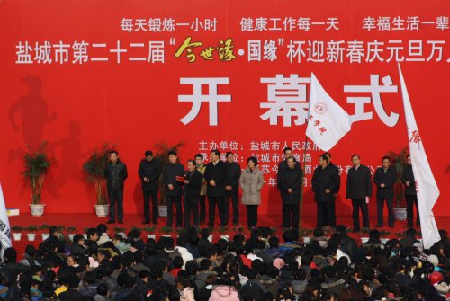 2011年12月30日,鹽城、泰州、泰興三地舉行“今世緣·國(guó)緣杯”慶元旦長(zhǎng)跑活動(dòng)。在鹽城,鹽城市委常委、宣傳部長(zhǎng)陳紅紅宣布鹽城市第二十二屆“今世緣·國(guó)緣杯”迎新春慶元旦萬(wàn)人長(zhǎng)跑活動(dòng)開(kāi)始,副市長(zhǎng)朱傳耿致詞,市人大常委會(huì)副主任陳衛(wèi)國(guó),市政協(xié)副主席葛傳華,今世緣酒業(yè)紀(jì)委書(shū)記、副總經(jīng)理嚴(yán)漢忠和鹽城市相關(guān)部門(mén)負(fù)責(zé)同志及近萬(wàn)名群眾參加。在泰州,2012年“今世緣·國(guó)緣”杯元旦萬(wàn)人健身長(zhǎng)跑活動(dòng)在泰州市江蘇牧院南大門(mén)廣場(chǎng)舉行。泰州市政府秘書(shū)長(zhǎng)王群主持活動(dòng),市長(zhǎng)徐郭平、宣傳部長(zhǎng)倪斌、副市長(zhǎng)曹玉梅、體育局局長(zhǎng)劉秋平以及孫慶祥、戈麗和、黃立紅等泰州市領(lǐng)導(dǎo)參加?,F(xiàn)場(chǎng)參加長(zhǎng)跑健身活動(dòng)的有來(lái)自泰州市各大高校的學(xué)生和老師,泰州多家企業(yè)職工,政府機(jī)關(guān)工作人員,泰州軍區(qū)官兵,群眾,一起長(zhǎng)跑健身喜迎2012年元旦。在泰興,泰興市委書(shū)記張兆江、市長(zhǎng)高亞梓等四整套班子領(lǐng)導(dǎo)和市級(jí)機(jī)關(guān)各部門(mén)、企業(yè)事業(yè)單位職、社區(qū)居民、學(xué)生以及健身項(xiàng)目展示人員代表,共計(jì)1.2萬(wàn)多人參加了泰興市2012年“今世緣·國(guó)緣杯”慶元旦萬(wàn)人健身長(zhǎng)跑活動(dòng)。