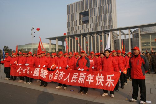 2011年12月31日,“今世緣·國(guó)緣杯”迎新年健身長(zhǎng)跑活動(dòng)在鎮(zhèn)江、江都、高郵三地舉行。在鎮(zhèn)江,迎新年萬(wàn)人健身長(zhǎng)跑活動(dòng)在鎮(zhèn)江市政府廣場(chǎng)拉開(kāi)了帷幕。作為鎮(zhèn)江市一年一度的重大體育盛事,此次長(zhǎng)跑活動(dòng)吸引了鎮(zhèn)江市級(jí)機(jī)關(guān)、軍隊(duì)院校、各企事業(yè)單位以及各街道辦的上萬(wàn)人參與。今世緣酒業(yè)派出了由鎮(zhèn)江市江海酒業(yè)、伏氏商貿(mào)等主要經(jīng)銷(xiāo)商組成的紅色方陣在隊(duì)伍中格外耀眼。鎮(zhèn)江市委書(shū)記許津榮、市長(zhǎng)劉捍東等領(lǐng)導(dǎo)出席活動(dòng)。上午8時(shí)50分,許津榮鳴槍發(fā)令,宣布“今世緣·國(guó)緣杯”鎮(zhèn)江市迎新年萬(wàn)人健身長(zhǎng)跑活動(dòng)正式開(kāi)始。在江都,由江都區(qū)機(jī)關(guān)事業(yè)單位工作人員、學(xué)生以及群眾組成的萬(wàn)人健身長(zhǎng)跑隊(duì)伍從區(qū)行政中心門(mén)前出發(fā),頂著凜冽的寒風(fēng),迎著燦爛的朝陽(yáng),浩浩蕩蕩踏上了迎接新年的征程。江都市體育局副局長(zhǎng)鄒信虎出席活動(dòng)并講話。在高郵,高郵市行政中心廣場(chǎng)上人如海、花如潮,列隊(duì)待發(fā)的長(zhǎng)跑隊(duì)伍,把這里裝扮得朝氣蓬勃。來(lái)自高郵市機(jī)關(guān)事業(yè)單位、駐郵部隊(duì)、開(kāi)發(fā)區(qū)和城南新區(qū)企業(yè)、城區(qū)中小學(xué)、社區(qū)、體育協(xié)會(huì)等近萬(wàn)名干部群眾和學(xué)生懷著新的愿望、新的憧憬和新的向往,用矯健的身姿迎接2012年。