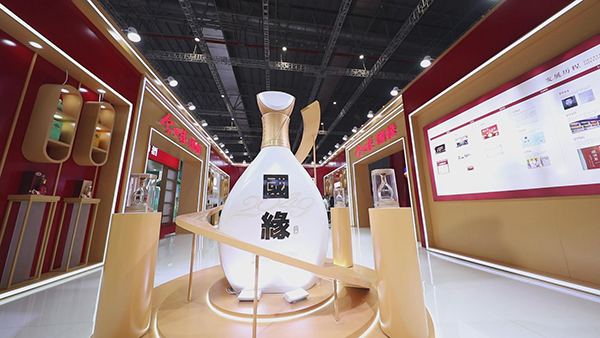 今世緣酒業(yè)的展位設(shè)計時尚大氣,以紅、金、白三色為主色調(diào),營造出一種高端、典雅的氛圍。展位內(nèi),國緣2049、國緣V9、國緣四開、今世緣寶石系列以及高溝標(biāo)樣等產(chǎn)品整齊陳列,吸引了眾多參觀者駐足品鑒。