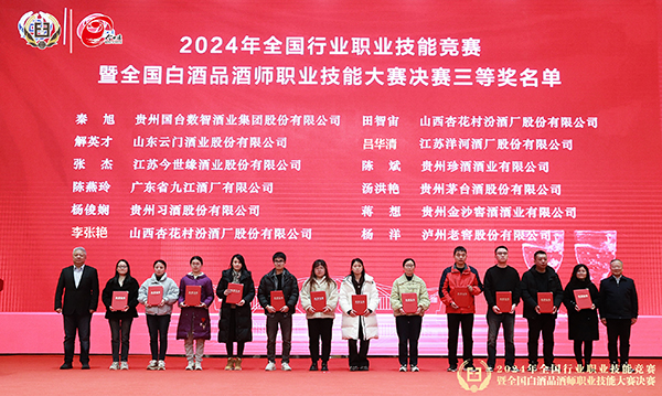 據(jù)了解,本次大賽作為中國白酒品鑒最高資格賽事,本著嚴(yán)謹(jǐn)、公開、公正的比賽原則,共設(shè)置了一輪理論競(jìng)賽,十一輪嘗評(píng)能力競(jìng)賽。試題來自多方,經(jīng)梳理完善確定,內(nèi)容涵蓋白酒全產(chǎn)業(yè)鏈,考核全面且有難度,選手整體表現(xiàn)優(yōu)異。經(jīng)過激烈角逐,最終產(chǎn)生了8名一等獎(jiǎng)、18名二等獎(jiǎng)和24名三等獎(jiǎng)。其中,今世緣酒業(yè)的孫偉、王恒、張杰分別獲得一、二、三等獎(jiǎng)。孫偉摘得2024年全國白酒品酒師職業(yè)技能大賽決賽第1名,被授予“全國食品行業(yè)技術(shù)能手”榮譽(yù)稱號(hào)。這份榮譽(yù)不僅是對(duì)個(gè)人能力的肯定,更展現(xiàn)了今世緣酒業(yè)品酒技藝方面的實(shí)力。