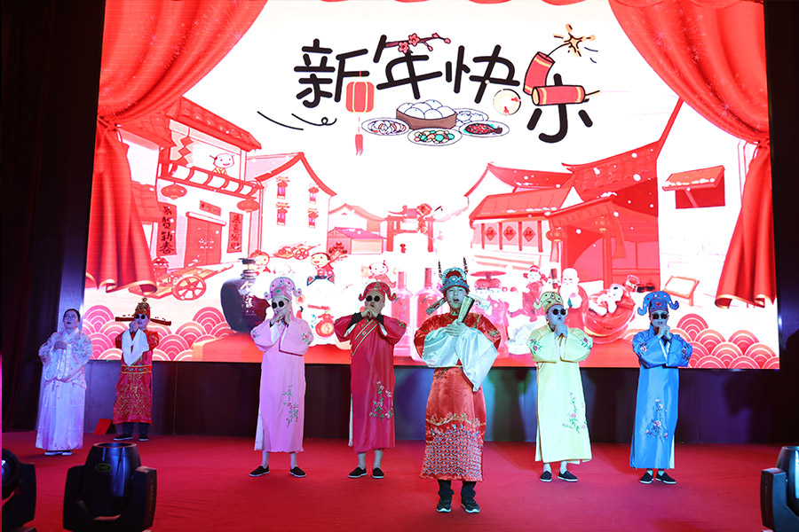 團(tuán)拜會上,大家共同觀看了精彩的文藝演出。歌伴舞《歡樂喜慶家》、鑼鼓三句半《厲害了,今世緣》、六人合唱《相親相愛》、舞蹈《青春》、歌曲《緣來醉美》、朗誦《之路》、歌曲《幸福今世緣》、情景劇《今世梁?!?、男聲獨(dú)唱《親愛的小孩》、舞蹈《玫瑰情緣》、詩朗誦《酒緣大業(yè)》和舞蹈《陽光路上》等由公司員工自編自導(dǎo)自演的節(jié)目贏得現(xiàn)場觀眾熱烈的掌聲與喝彩聲,臺上臺下的歡聲笑語共同編織了一幅歡樂祥和的美麗畫卷。