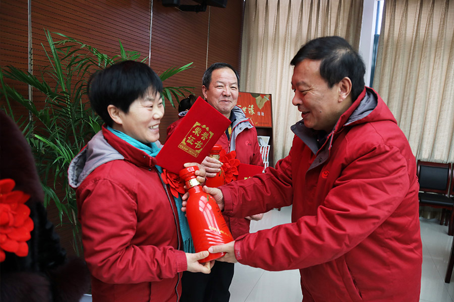 今世緣由小到大、由弱到強,是包括退休職工在內(nèi)的一代代職工共同奮斗的結(jié)果。周素明表示,舉行退休職工歡送會,主要有三個方面感想和大家分享。一是回憶往事,感慨良多。今天來參加歡送會的都是老員工,工齡短的18年,長的40多年,你們把青春的汗水灑在了高溝這片樂土上。你們經(jīng)歷了高溝酒廠和今世緣兩個時期,從剛開始的100多名員工到現(xiàn)在的3000多名,從當初的北廠逐漸向東、向南拓展開來,今世緣的發(fā)展有三點令人感慨:今世緣越做越大,從當初的100多畝發(fā)展到了現(xiàn)在的3000多畝,還在向南繼續(xù)發(fā)展;今世緣越做越美,2017年創(chuàng)成“國家AAAA級旅游景區(qū)”;今世緣越做越強,從2008年開始躋身白酒行業(yè)十強,2014年成功上市,市值一直處于前十。二是展望未來,信心滿滿。黨的十九大描繪了新時代的宏偉藍圖,中國越來越走進世界舞臺的中心。感恩共產(chǎn)黨與社會主義制度,是它們給企業(yè)發(fā)展帶來機遇。2017年今世緣銷售、利稅實現(xiàn)新高,產(chǎn)品結(jié)構(gòu)持續(xù)優(yōu)化,榮獲“全國質(zhì)量獎”,企業(yè)發(fā)展質(zhì)量顯著提升。今世緣堅持高質(zhì)量發(fā)展,是在職和退休員工的共同心愿,我們對未來充滿信心。三是干好當下,一起努力。2018年是“十三五”承上啟下之年,我們既對市場銷售提出了更高要求,還對多元發(fā)展進行了布局。我們正在規(guī)劃建設(shè)緣文化博物館,努力把高溝打造成中華緣文化圣地,使旅游內(nèi)涵更豐富,文化更有特色,為高溝地區(qū)團人氣、聚財氣。我們還規(guī)劃在南廠區(qū)建設(shè)智能化包裝中心,在保證收入的同時大大降低工人的勞動強度。希望大家一如既往地關(guān)心和支持今世緣的發(fā)展,因為我們有一個共同的名字:今世緣人。