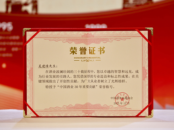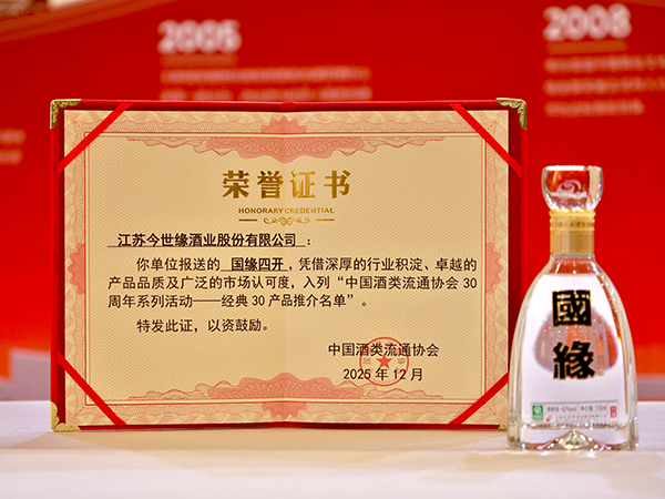 在本次活動中,今世緣酒業(yè)旗下核心單品國緣四開入列“中國酒類流通協(xié)會30周年系列活動——經(jīng)典30產(chǎn)品推介名單”,國緣2049獲評“為生活更美好·酒業(yè)未來30產(chǎn)品”,今世緣旅游景區(qū)入選“酒旅融合目的地推介名單”,今世緣酒業(yè)副董事長、副總經(jīng)理兼總工程師吳建峰被表彰為“中國酒業(yè)30年重要貢獻(xiàn)人物”。四項(xiàng)榮譽(yù)覆蓋產(chǎn)品、業(yè)態(tài)、人才三大維度,是行業(yè)對其綜合實(shí)力的高度認(rèn)可。