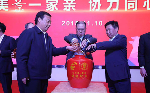良緣美景一家親,協(xié)力同心兄弟情。11月10日至11日,“良緣美景,協(xié)力同心”今世緣——景芝協(xié)同發(fā)展交流會在江蘇今世緣酒業(yè)召開。會議明確了雙方深化合作、協(xié)同發(fā)展的目標(biāo)和路徑,標(biāo)志著繼10月15日江蘇今世緣酒業(yè)發(fā)布“擬以現(xiàn)金方式收購山東景芝酒業(yè)股份有限公司34%-49%股份”公告之后,蘇魯兩家著名白酒企業(yè)的深度合作又向前邁出了一大步。雙方企業(yè)的高管層和部門負(fù)責(zé)人共60余人出席了會議。中國食品工業(yè)協(xié)會黨委書記、白酒專業(yè)委員會秘書長馬勇參加會議,并為“同心酒”封壇。