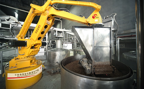 今世緣酒業(yè)“中國(guó)白酒智能化釀酒師范車間”正在釀造美酒的“緣小新”