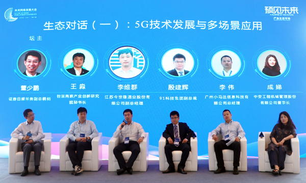 今世緣酒業(yè)副總經理李維群(左三)在“預見未來”智慧產業(yè)生態(tài)專場就智能化釀酒分享今世緣酒業(yè)的創(chuàng)新實踐。