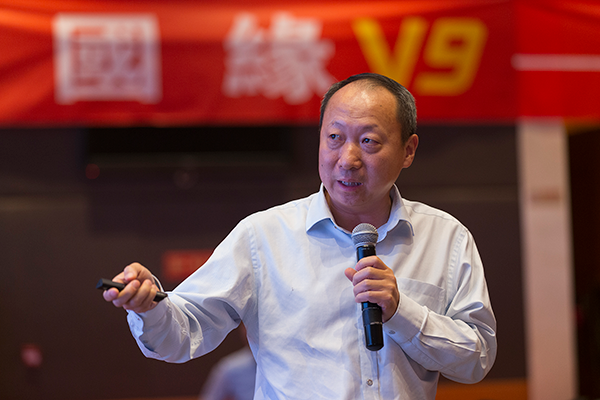 “大國醬香首席工匠”今世緣酒業(yè)副董事長、副總經(jīng)理吳建峰在大國醬香?大師品鑒VIP盛宴上分享國緣V9清雅醬香。