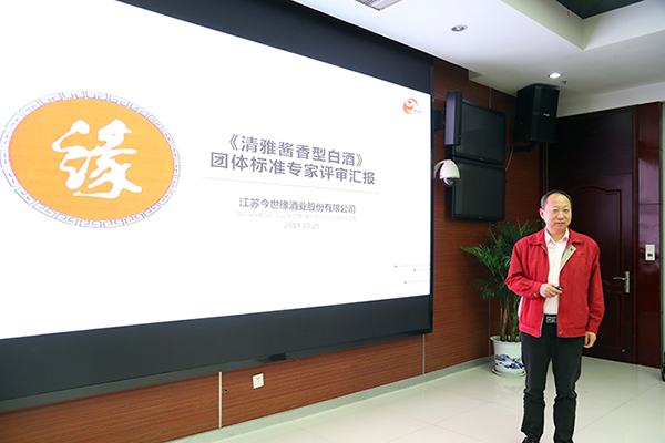 今世緣酒業(yè)副董事長、副總經(jīng)理吳建峰博士匯報清雅醬香型白酒團體標準相關(guān)情況