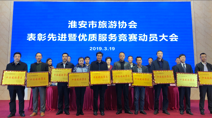 3月19日,淮安市旅游協(xié)會舉行表彰先進(jìn)暨服務(wù)競賽動員大會,對2018年度30家旅游行業(yè)先進(jìn)集體、75名旅游行業(yè)先進(jìn)個人進(jìn)行了表彰。國家4A級旅游景區(qū)、今世緣旅游景區(qū)獲評“2018年度淮安市十佳旅游景區(qū)”。文旅公司副經(jīng)理兼運(yùn)營管理處經(jīng)理王立祥榮獲“旅游景區(qū)優(yōu)秀負(fù)責(zé)人”,講解員許青、王月蕓榮獲“旅游景區(qū)明星講解員”稱號。