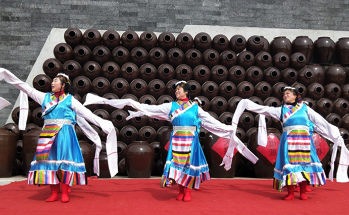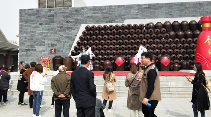 3月30日上午,高溝鎮(zhèn)許莊村老年藝術(shù)團(tuán)的演員在今世緣景區(qū)高溝酒非遺保護(hù)區(qū)的酒藝廣場表演了具地方特色文化的歌舞節(jié)目,300多名游客觀看了節(jié)目。