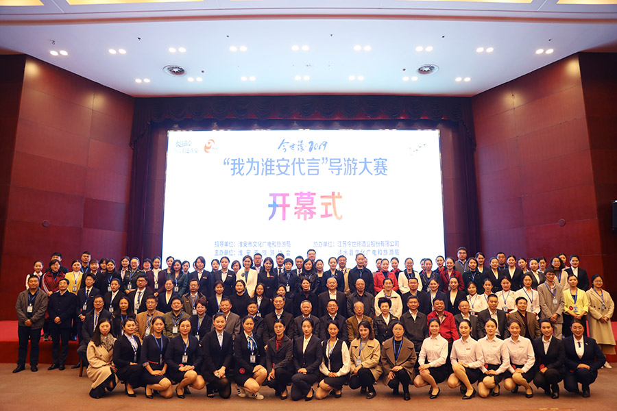 為打造淮安導游品牌,樹立美好淮安旅游形象,11月16日至17日,由市文化廣電和旅游局指導、市旅游協(xié)會主辦、今世緣酒業(yè)協(xié)辦的今世緣2019“我為淮安代言”導游大賽在今世緣酒業(yè)道德講堂舉行。省文旅廳副巡視員馬龍,省旅游協(xié)會副會長唐建國,副市長趙權,市文旅局局長張沖林,淮安市旅游協(xié)會會長朱友冬,縣委副書記、縣長時勇,縣委常委、宣傳部部長姜杰,今世緣酒業(yè)黨委副書記、工會主席、監(jiān)事會主席魯正波等出席開幕式。來自全市各縣區(qū)選送的17支代表隊,67名導游參加比賽。