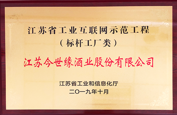 2019年10月,江蘇省工業(yè)和信息化廳認定江蘇今世緣酒業(yè)股份有限公司為2018年江蘇省工業(yè)互聯(lián)網示范企業(yè)(標桿工廠類)。8月19日,認定江蘇今世緣酒業(yè)股份有限公司為2019年首批省工業(yè)互聯(lián)網發(fā)展示范企業(yè)(五星級上云企業(yè))。11月6日,榮膺“長三角工業(yè)互聯(lián)網平臺應用示范企業(yè)”稱號。2016年以來,今世緣酒業(yè)強化工業(yè)互聯(lián)網建設和應用,加快企業(yè)數(shù)字化、網絡化、智能化轉型升級步伐,逐步建立并運用了涵蓋應用系統(tǒng)、硬件服務、數(shù)據(jù)庫、設備管理、信息安全、智能制造和個性化定制等主要模塊的云服務平臺,有效提升了公司信息化管理和服務能力。