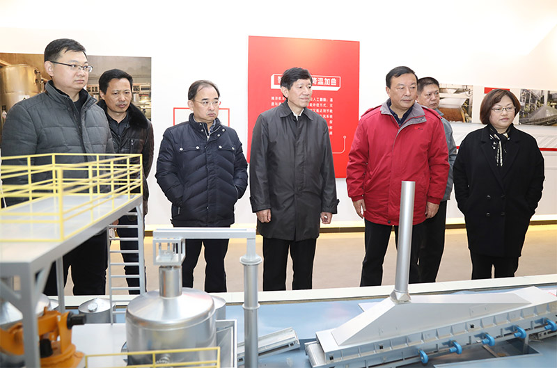 省委第二督查組組長(zhǎng)、省政協(xié)提案委員會(huì)副主任莊同保(中)在縣委書記王向紅(右一),今世緣酒業(yè)黨委書記、董事長(zhǎng)、總經(jīng)理周素明的陪同下參觀中國(guó)白酒智能化釀造示范車間。