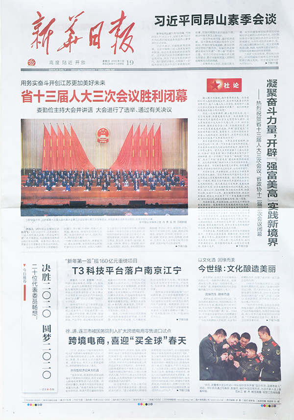 《新華日報(bào)》1月19日頭版