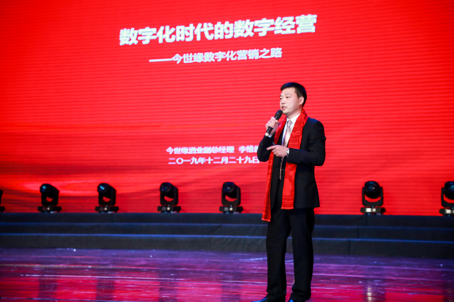 今世緣酒業(yè)副總經(jīng)理李維群在2020今世緣發(fā)展大會上分享今世緣數(shù)字化營銷之路 。