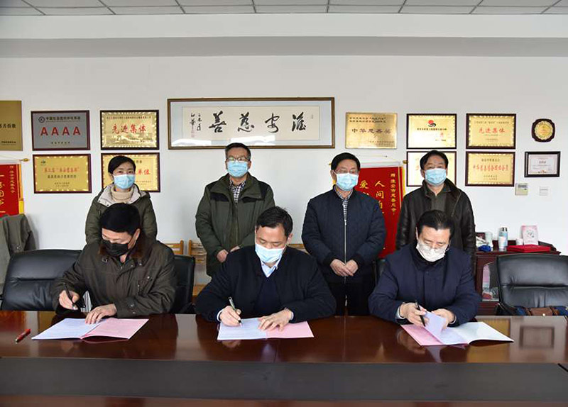 今世緣酒業(yè)副總經(jīng)理、董事會秘書王衛(wèi)東(前排中)代表今世緣簽署捐贈協(xié)議書。