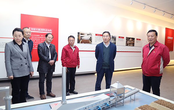 市應(yīng)急管理局黨組書記、局長劉愛國在(右二)“中國白酒智能化釀酒示范車間”