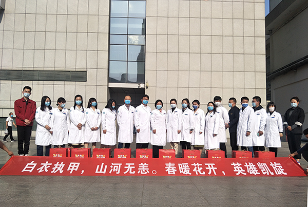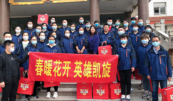 美酒與英雄有緣,鮮花與掌聲相迎。4月13日,最后一批撤離武漢的江蘇援湖北醫(yī)療隊(duì)回到江蘇。至此,江蘇省從1月25日起先后派出的13批22支醫(yī)療隊(duì)全部返蘇。今世緣酒業(yè)為每位凱旋英雄贈送特制美酒國緣V9,并送上慰問信,致敬醫(yī)者仁心,為英雄干杯祝捷。