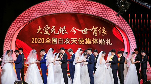 江蘇廣播電視總臺主持人陳怡、曹洋主持2020全國白衣天使集體婚禮。