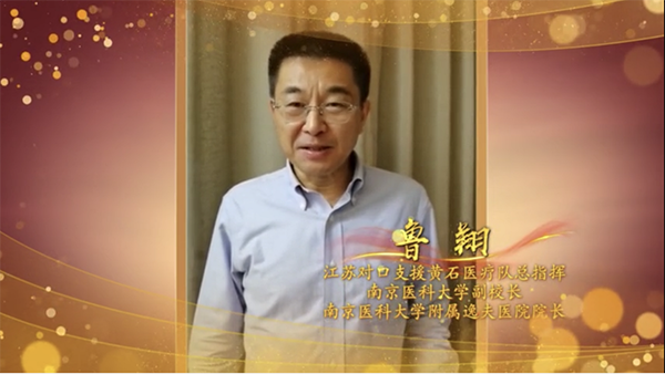 江蘇對口支援黃石醫(yī)療隊(duì)總指揮、南京醫(yī)科大學(xué)副校長魯翔為2020全國白衣天使集體婚禮證婚。
