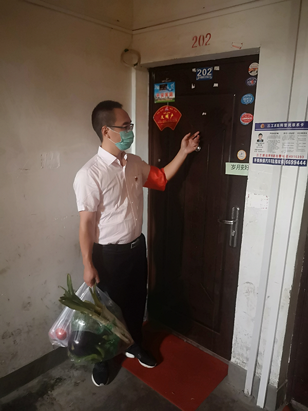 7月30日,被選為第一批“黨員志愿者”的李建州準(zhǔn)時(shí)到達(dá)社區(qū)。按照社區(qū)“一個(gè)人負(fù)責(zé)一個(gè)單元”的要求,李建州佩戴好黨員徽章、醫(yī)用口罩和“志愿者”紅袖章,按照樓層號(hào),將社區(qū)配好的蔬菜一一送到居民家中。送完菜之后,他回到居住點(diǎn),一邊線上開展工作,一邊等待社區(qū)通知。根據(jù)社區(qū)要求,如果居民有取快遞、買藥等臨時(shí)性需求,志愿者必須馬上到崗。晚上9點(diǎn),李建州再次到達(dá)社區(qū),幫助居民將家里的垃圾接收后,放到指定的垃圾回收點(diǎn)。夜色中,望著空空蕩蕩的大街,拖著疲憊的身體返程,一天的志愿服務(wù)才算完成。