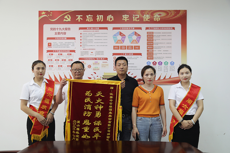 “感謝今世緣對我們的幫助,感謝今世緣消防隊(duì)及時(shí)伸出援手,你們就是在我們身邊的英雄!”7月6日,高溝鎮(zhèn)周六福珠寶高溝店負(fù)責(zé)人方士喜,將一面繡有“滅火神勇保民平安 為民消防恩重如山”的錦旗贈(zèng)送給今世緣消防隊(duì)全體指戰(zhàn)員,向不畏艱險(xiǎn)的消防隊(duì)員表示誠摯謝意和崇高敬意。