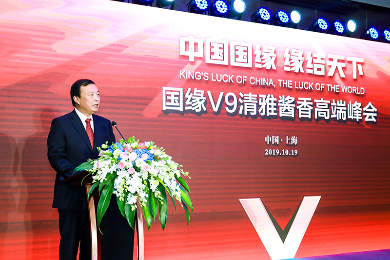 今世緣酒業(yè)黨委書記、董事長(zhǎng)、總經(jīng)理周素明在上海舉行的“國(guó)緣V9”清雅醬香高端峰會(huì)上
