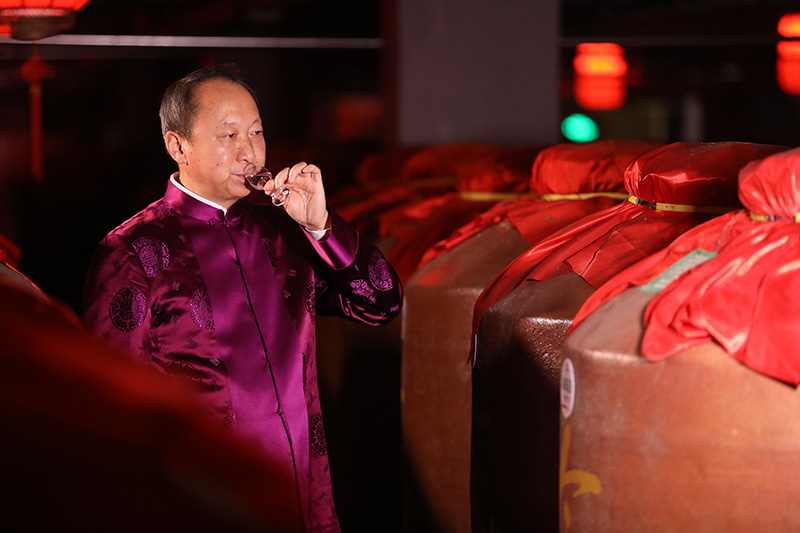 中國(guó)白酒首席品酒師、中國(guó)白酒大師、今世緣酒業(yè)副董事長(zhǎng)、副總經(jīng)理吳建峰博士在品鑒貯存的國(guó)緣V9原酒
