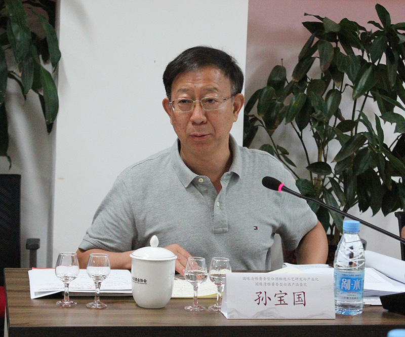 中國(guó)工程院院士、北京工商大學(xué)校長(zhǎng)孫寶國(guó)在清雅醬香型白酒釀造工藝創(chuàng)新成果鑒定會(huì)上