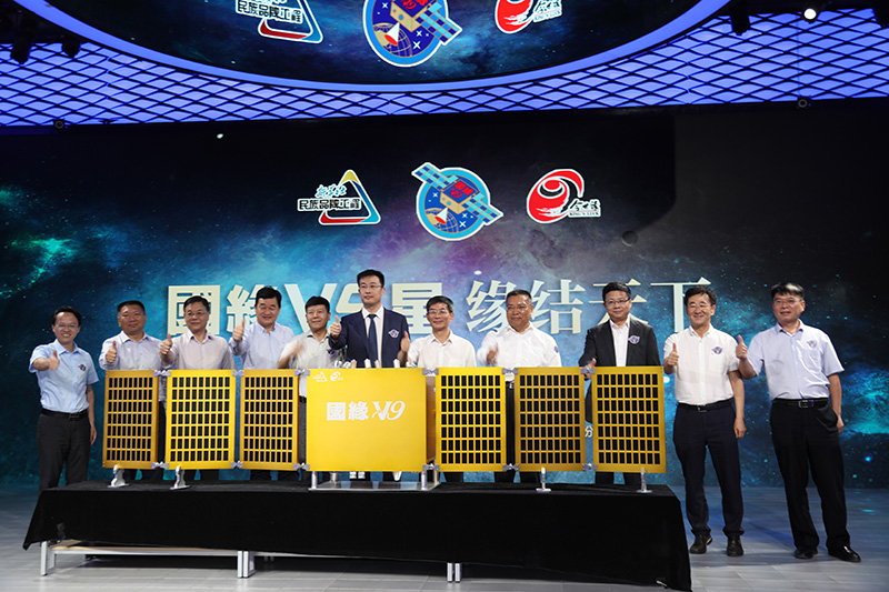 在新華媒體創(chuàng)意工場(chǎng)舉行的“國(guó)緣V9”號(hào)衛(wèi)星冠名儀式