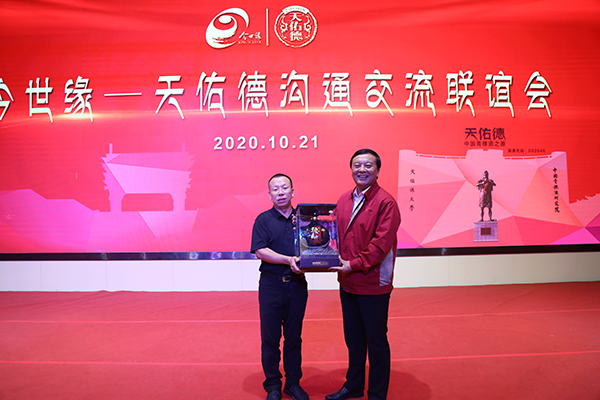 聯(lián)誼會上,周素明與李銀會互贈美酒,共敘美好緣分,共話美好未來。