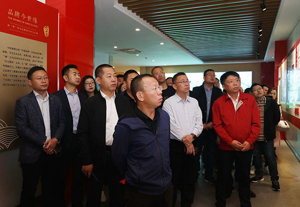 青稞酒董事長李銀會(中)一行參觀今世緣展示中心。
