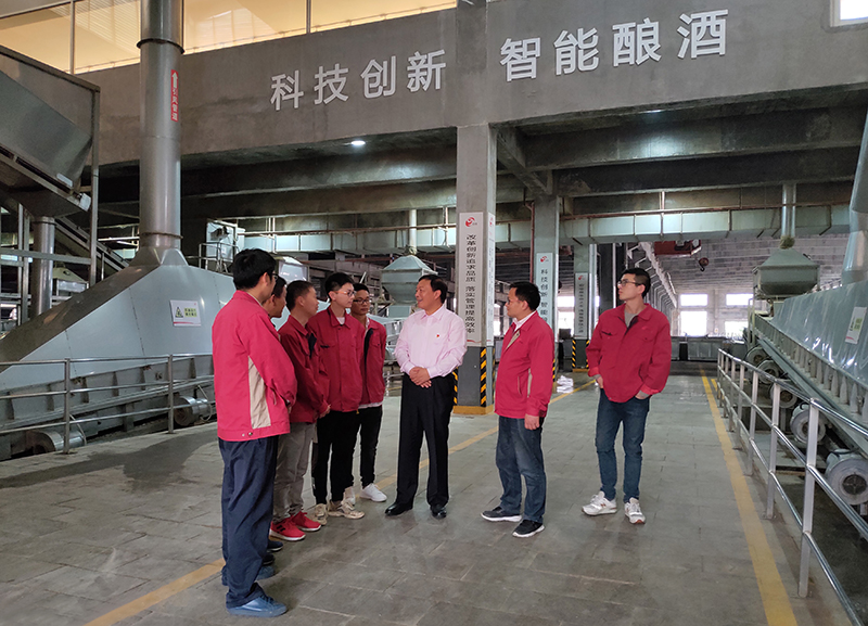 今世緣酒業(yè)黨委書(shū)記、董事長(zhǎng)、總經(jīng)理周素明在智能化釀酒車間調(diào)研生產(chǎn)工作。