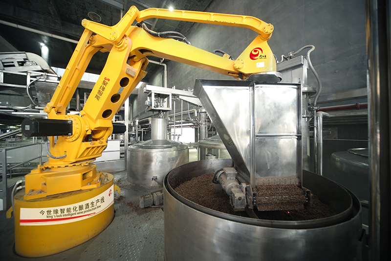 今世緣智能化釀酒車間裝甑機(jī)器人正在工作