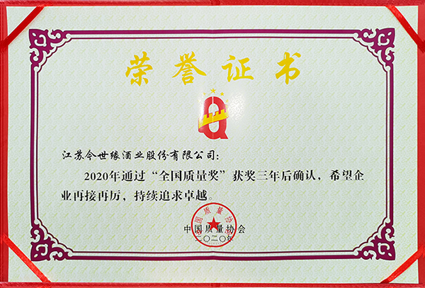 今世緣自2017年榮獲“全國質量獎”后,以持續(xù)宣貫和運用卓越績效標準為主線,聘請中國質量協(xié)會專家,對中層以上管理人員開展企業(yè)內部自評師培訓,提高自評師評審技巧和能力,并結合公司實際,開展了系統(tǒng)的自我評價。今世緣遵循新發(fā)展理念,以高質量發(fā)展為導向,以信息化建設、精益化管理為抓手,以釀酒智能化、營銷數(shù)字化為載體,著力打造智慧工廠,促進了公司由優(yōu)秀向卓越邁進。未來,圍繞“釀美酒,結善緣”的企業(yè)使命,今世緣將再接再厲,不斷壯大發(fā)展自身,同時發(fā)揮行業(yè)示范作用,繼續(xù)倡導和踐行以卓越為引領,以質量創(chuàng)品牌,以創(chuàng)新促發(fā)展,助力企業(yè)實現(xiàn)高質量發(fā)展。