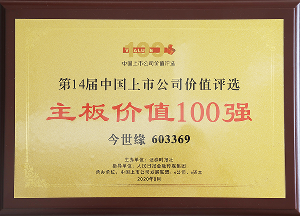 2020年8月28日,今世緣榮獲中國上市公司“主板價值100強”。