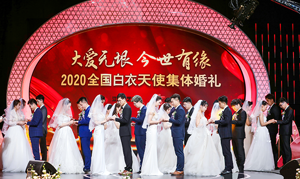 2020年5月20日,今世緣酒業(yè)為抗擊疫情推遲婚期的白衣天使舉辦集體婚禮。