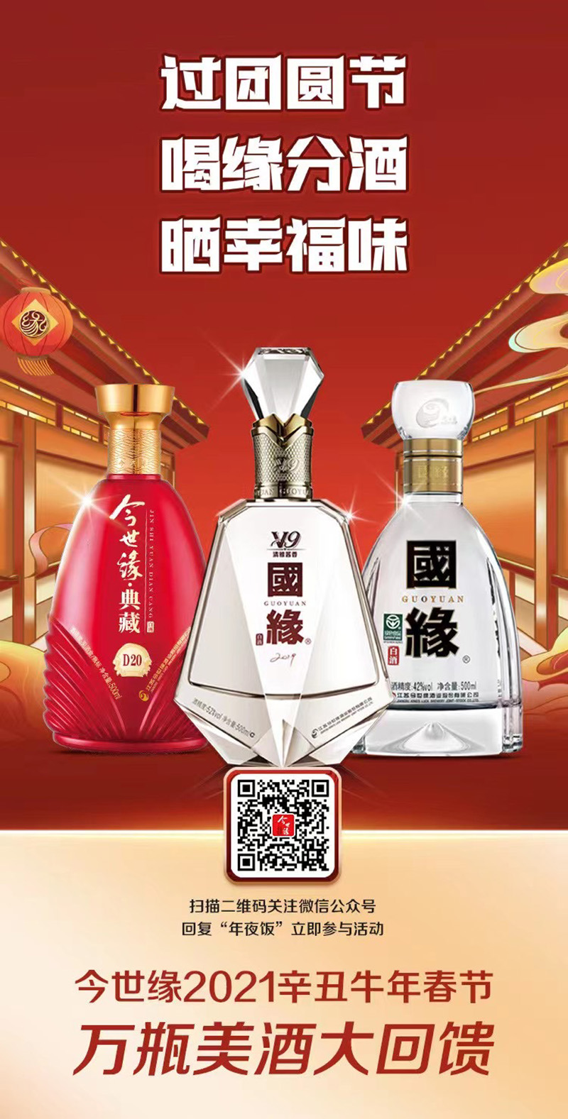 除夕,今世緣重磅開啟以“過團圓節(jié),喝緣分酒,曬幸福味”為主題的2021辛丑年春節(jié)萬瓶美酒大回饋活動。
