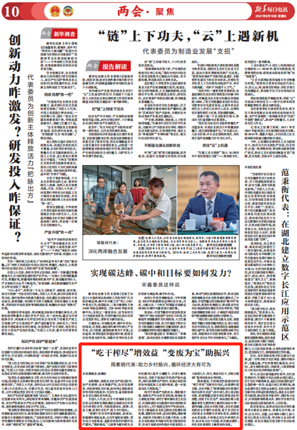 周素明代表:助力鄉(xiāng)村振興,循環(huán)經(jīng)濟大有可為