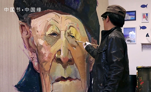潘皓:當(dāng)我看那些老紅軍都已經(jīng)是百歲了,九十九一百歲了。我畫他們的時(shí)候我仿佛看到當(dāng)年,他們是小年輕的時(shí)候的那種感覺,本來紅軍是離我們現(xiàn)代人已經(jīng)很遠(yuǎn)的這么一個(gè)記憶。當(dāng)我看到老紅軍的時(shí)候,我覺得他們還在,這個(gè)歷史并沒走遠(yuǎn),當(dāng)我畫這些老紅軍的時(shí)候,他的那種樸素、他們那種單純,就像一個(gè)本來擦得很亮的一個(gè)燈,慢慢讓灰塵蒙掉了你原來的光芒了。初心呢我覺得我們是創(chuàng)作,就讓這些歷史,讓大家再看看,當(dāng)時(shí)大家是為什么去流血犧牲的,用我們平凡的筆把我們的歷史拉過來。我覺得能夠用藝術(shù)把我們的這些對社會有意義的東西能夠體現(xiàn)出來,我覺得是作為一個(gè)藝術(shù)家,非常幸福的這么一個(gè)事兒。