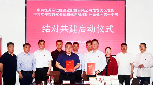 5月22日,今世緣酒業(yè)淮安大區(qū)黨支部與淮安市自然資源和規(guī)劃局淮陰分局機(jī)關(guān)第一支部開展結(jié)對(duì)共建交流活動(dòng)。市自然資源和規(guī)劃局淮陰分局總支書記、局長姜志永,總支委員、副局長盧寶,市自然資源和規(guī)劃局淮陰分局機(jī)關(guān)第一支部書記張斌飛,今世緣酒業(yè)淮安大區(qū)黨支部書記余濤等出席活動(dòng)。
