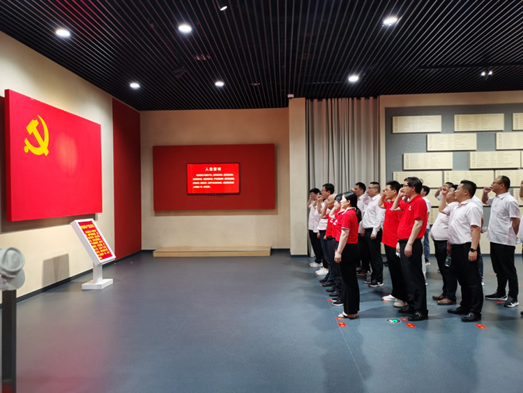 走進(jìn)新四軍紀(jì)念館,一件件文物、史料陳列,訴說著革命先烈的崢嶸歲月,抗戰(zhàn)場景躍然于眼前。大家參觀了新四軍“進(jìn)軍華中,開辟敵后抗日戰(zhàn)場”“重建軍部,全面加強(qiáng)部隊建設(shè)”“堅持抗戰(zhàn),縱橫馳騁江淮河汊”“反攻作戰(zhàn),奪取抗戰(zhàn)最后勝利”等場景。參觀結(jié)束后,鹽城大區(qū)副總經(jīng)理周培儉帶領(lǐng)大家在黨旗下莊嚴(yán)宣讀入黨誓詞,緬懷革命先輩。