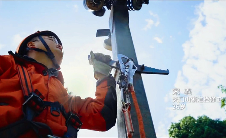 宋鑫負責(zé)的天門山索道,是國內(nèi)為數(shù)不多高差超過千米的索道之一、國內(nèi)局部斜度最大的索道,也是國內(nèi)支架最多的索道。